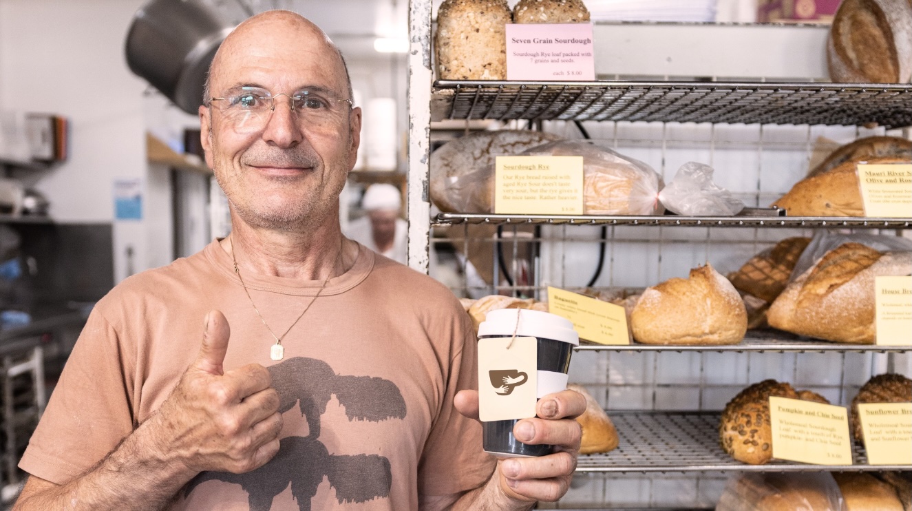 We love how this hand-crafted feature can be assembled at the start of the day and packed away again at close. Swiss Patisserie joined the townwide Mug Library back in 2022. Since then, they’ve inspired many a customer – both locals and tourists – to skip the single-use and instead chose an upcycled mug for their takeaway coffee.
